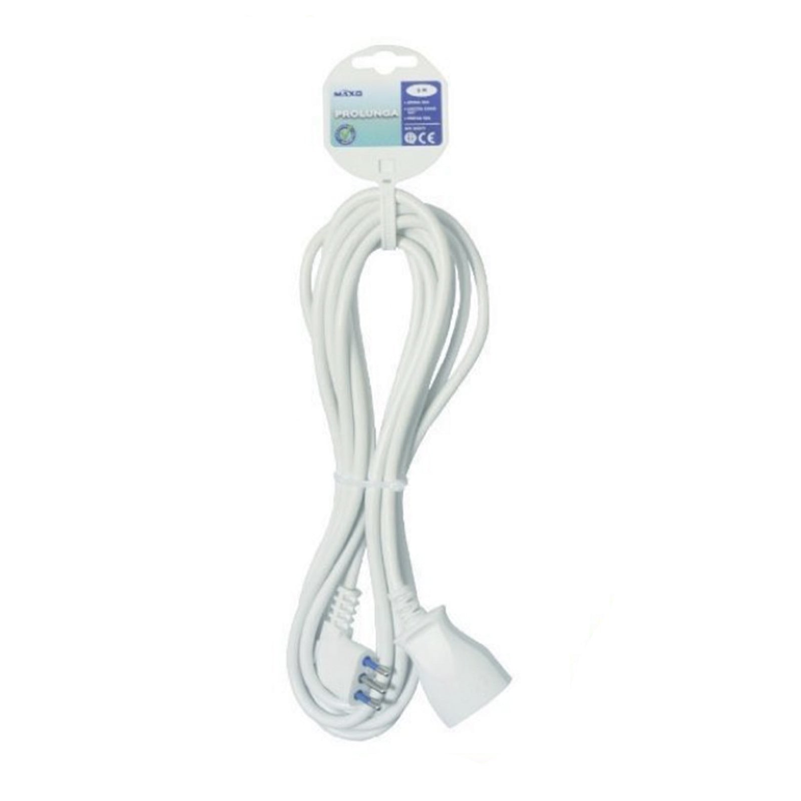 2 Pezzi Cavo di Prolunga Lineare 5 m 10A Bianco, Spina 2P+T e Presa 2P+T, Cavo H05VV-F 3G 1.0 mm², Uso Domestico e Ufficio– RIF 83271