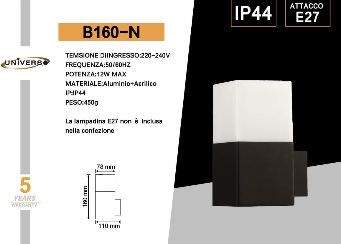 Applique da Esterno E27 IP44, Lampada da Parete Moderna in Alluminio e Acrilico, Attacco E27 (Lampadina non inclusa), Colore Bianco o Nero, per Facciata, Balcone e Giardino B160