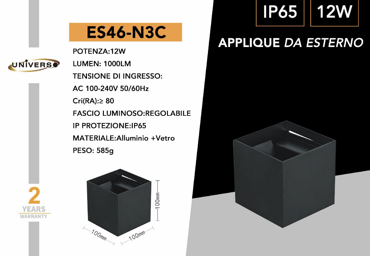 Applique da Esterno LED 12W IP65 – Lampada da Parete Regolabile con Fasci di Luce su e giù, CCT Switch 3000K/4000K/6500K, Alluminio Impermeabile per Facciata e Giardino ES46-3C