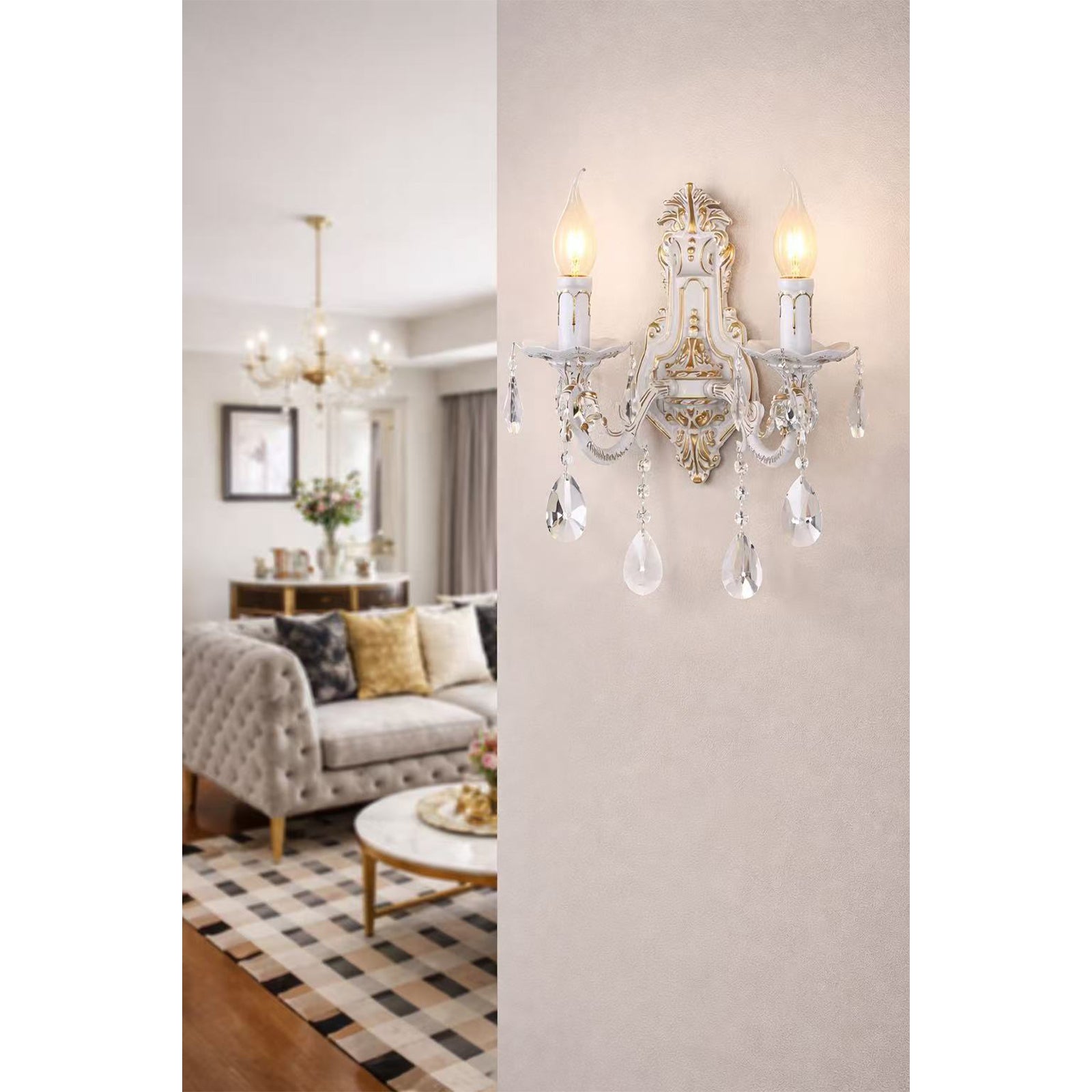 - Design classico ed elegante – Applique in stile vintage con cristalli decorativi, perfetta per ambienti raffinati