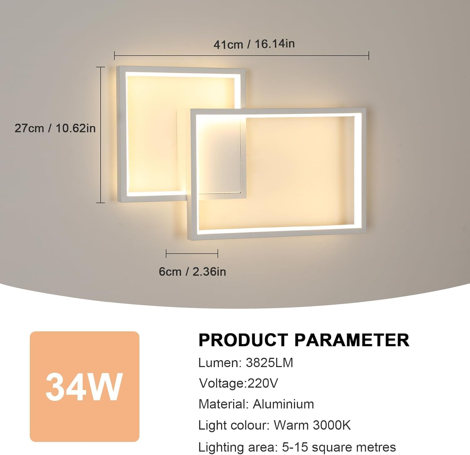 Applique LED Moderna 24W da Parete, CCT Switch 3000K/4000K/6500K, Lampada da Muro Design Geometrico per Soggiorno Camera Corridoio, IP20 – Serie AQ34