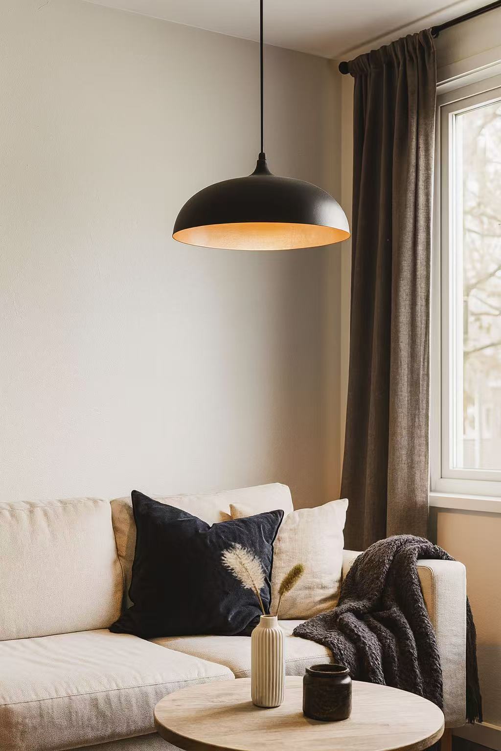 Lampadario a sospensione stile contemporaneo in metallo pendente a cupola attacco E27 luce tavolo cucina di colore nero o bianco Ø35 cm B90