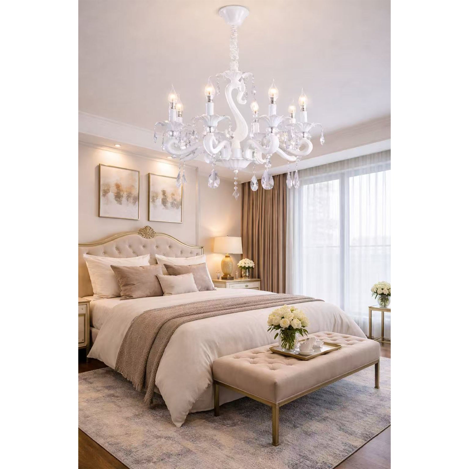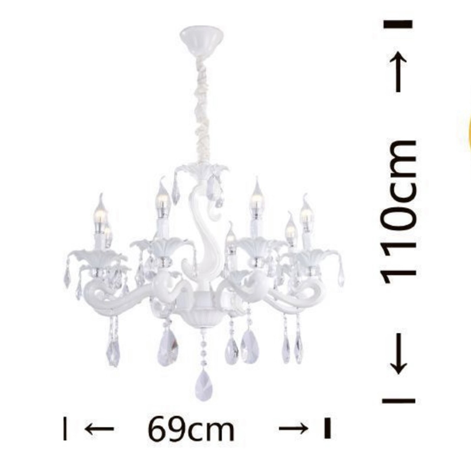 Lampadario in Cristallo Classico 8 Luci E14, Stile Elegante per Soggiorno e Sala da Pranzo, Metallo e Vetro, Ø69 cm, Bianco – A15-8