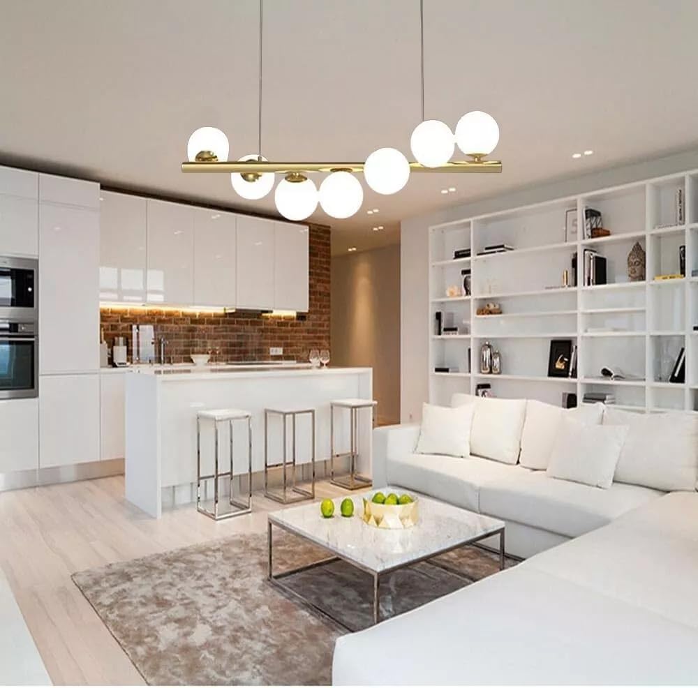 - ⭐【Design Moderno a 7 Luci】 Lampadario elegante con 7 sfere in vetro bianco, struttura in metallo color ottone. Stile moderno perfetto per soggiorno, cucina, sala da pranzo e camere.