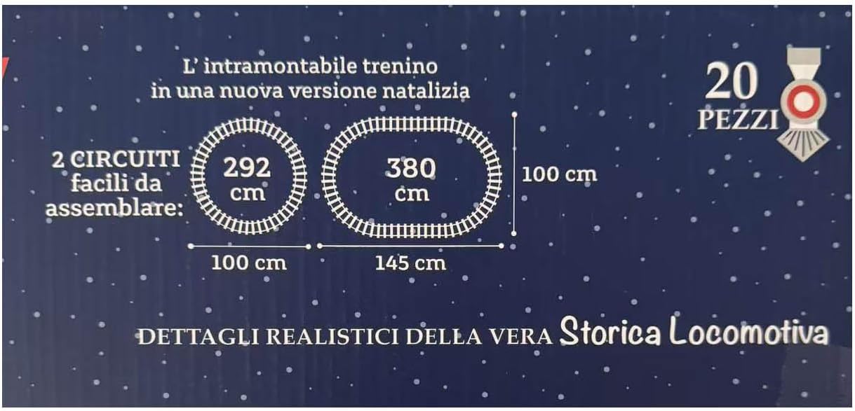- 1. 🎅 Design Natalizio Classico – Il trenino “Polo Nord Express” porta la magia del Natale direttamente a casa tua, con Babbo Natale sulla slitta e una locomotiva dallo stile vintage.
