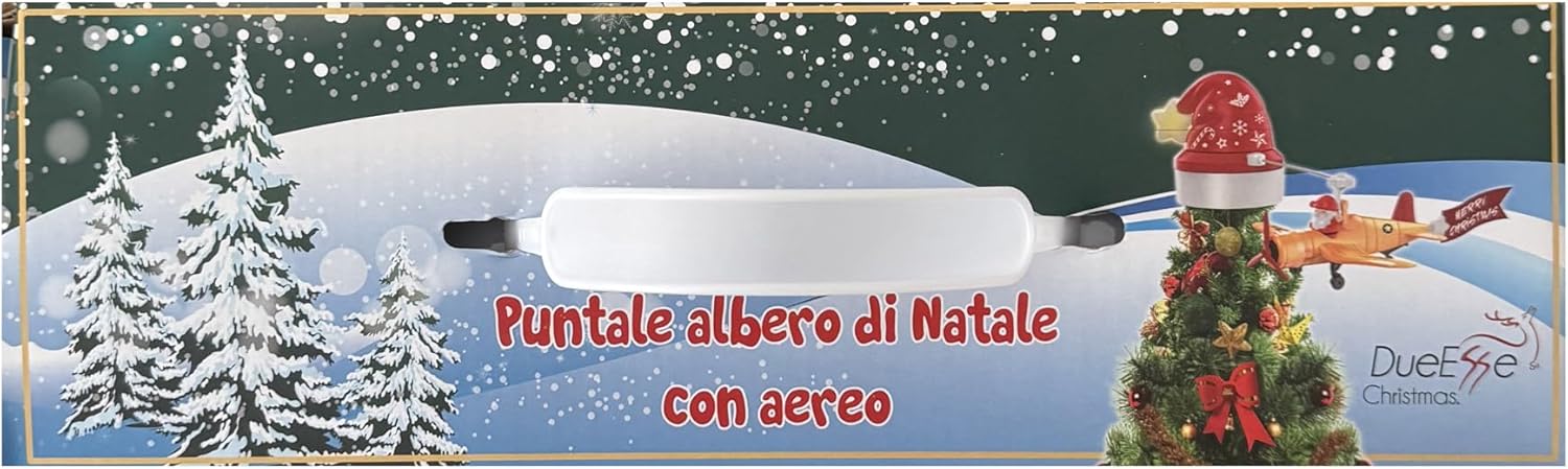 - 2. ✨ Con movimento, luce e musica – Il velivolo ruota automaticamente attorno alla sommità dell’albero, accompagnato da luci colorate e da una dolce melodia natalizia.