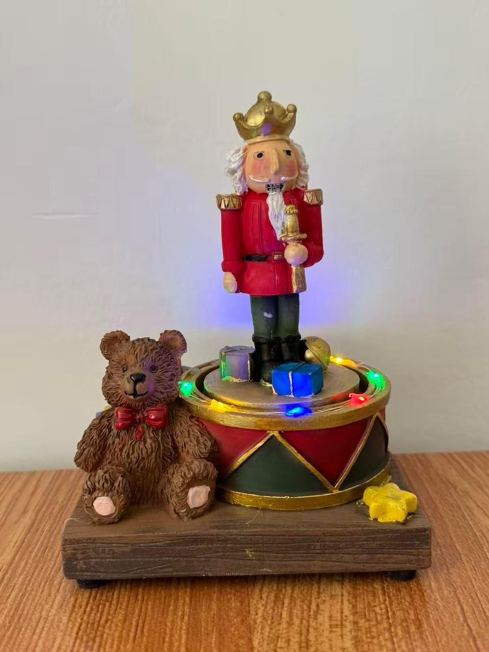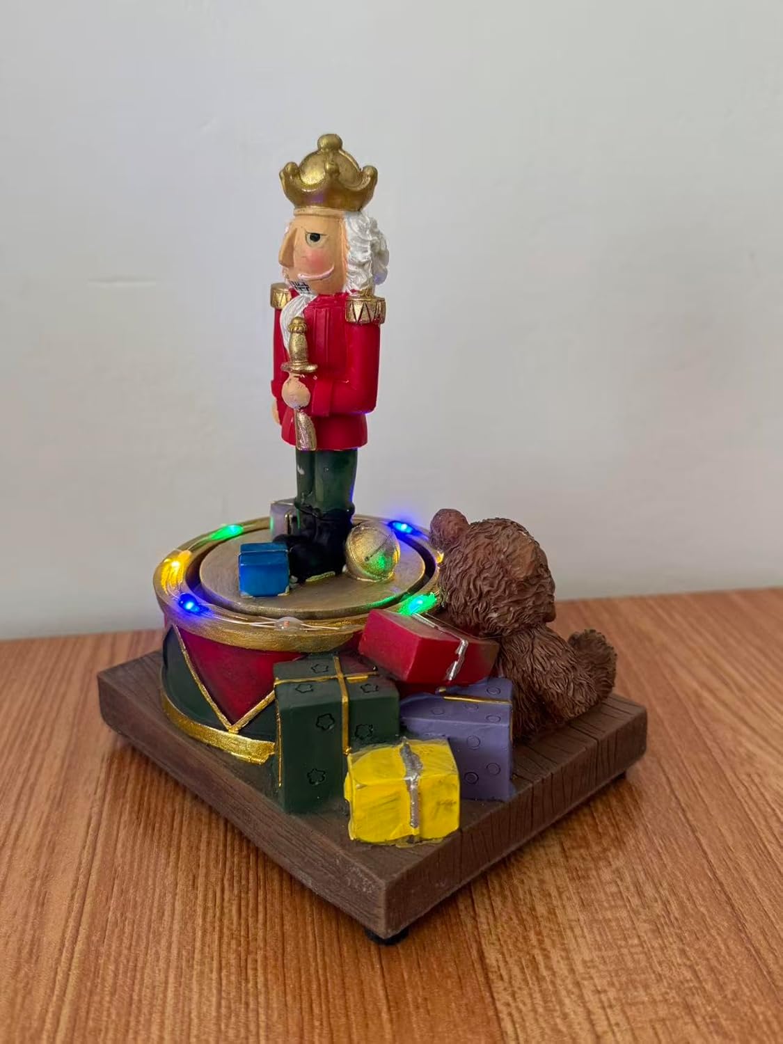 - 3. 🔄 CON MOVIMENTO ROTANTE – La base ruota dolcemente mentre il soldatino e i regali brillano, attirando l’attenzione di grandi e piccini.