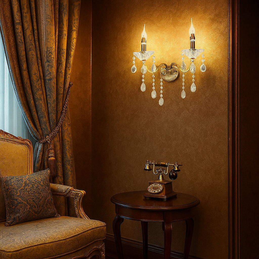 TEKHOME Applique da Muro Classica in Cristallo 2 Luci, Portalampada E14, Lampada da Parete Stile Candelabro, Vari Colori E35