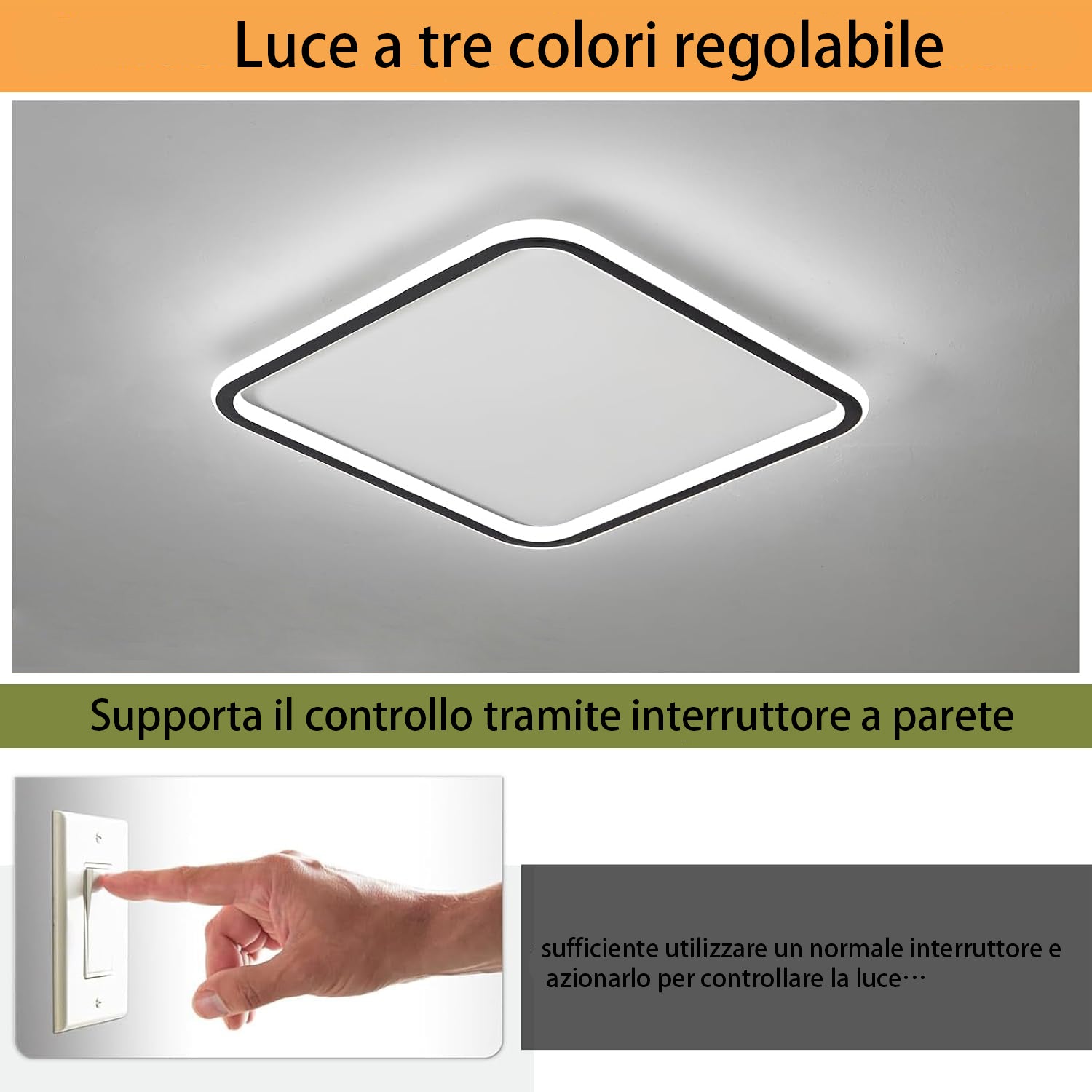 - Lampada da soffitto 3COLORE, luce CALDA/NATURALE/ FREDDA: lampada da soffitto a LED in stile moderno, 5 cm di altezza ultra sottile + bordo di bloccaggio nero presenta una bellezza semplice ma non semplice. ideale per un'atmosfera accogliente Design di sicurezza con protezione da cortocircuito e parti in corrente