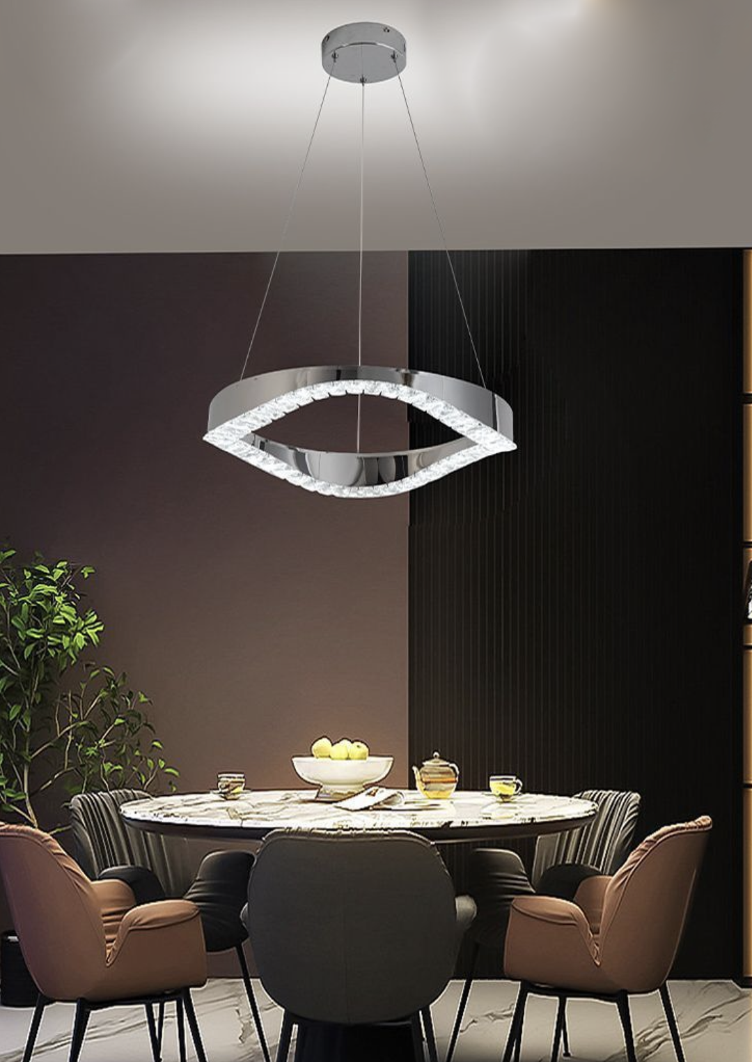 - Lampadario moderno dal design elegante e minimale, caratterizzato da bracci in acciaio inossidabile bianco e decorazioni in cristallo trasparente. Il suo stile contemporaneo si adatta perfettamente ad arredamenti moderni, aggiungendo un tocco di luce e raffinatezza alla tua cucina o al tuo soggiorno.