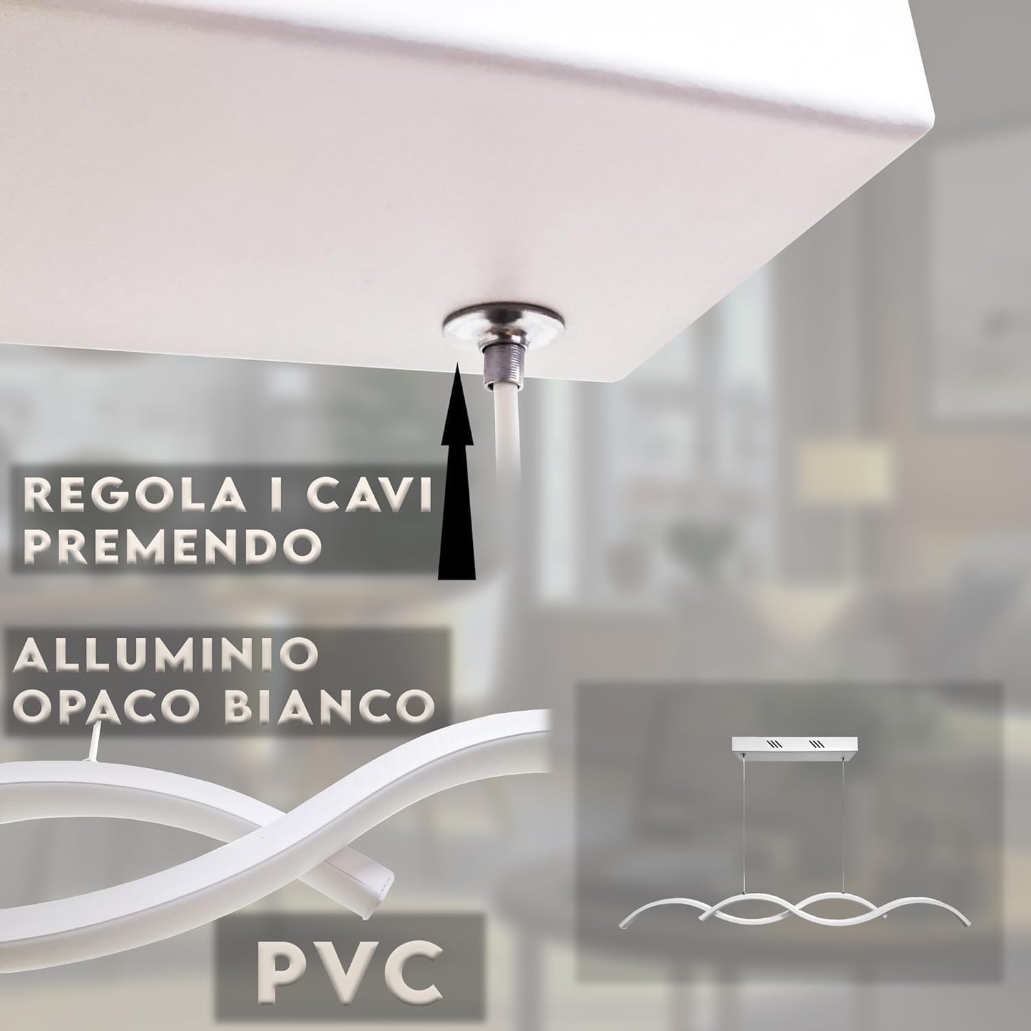 - Design Regolabile: Il filo di 120 cm è regolabile, permettendoti di adattare facilmente l'altezza del lampadario alle tue esigenze
