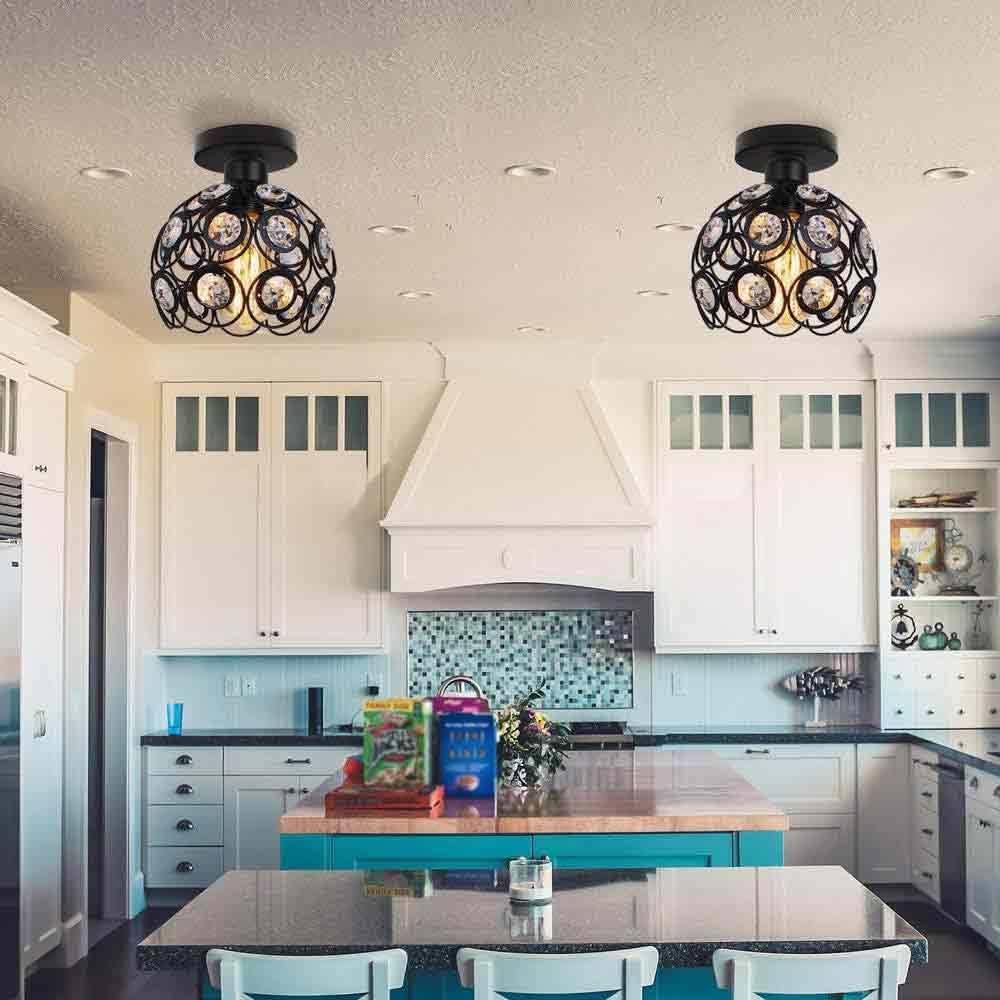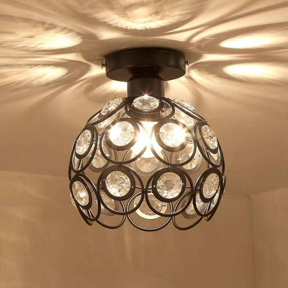 TEKHOME Lampadario da Soffitto a Sfera in Cristallo, Attacco E27, Nero e Bianco, Senza Lampadina, Stile Moderno, per Camera da Letto, Soggiorno, Corridoio, Ø28cm C23