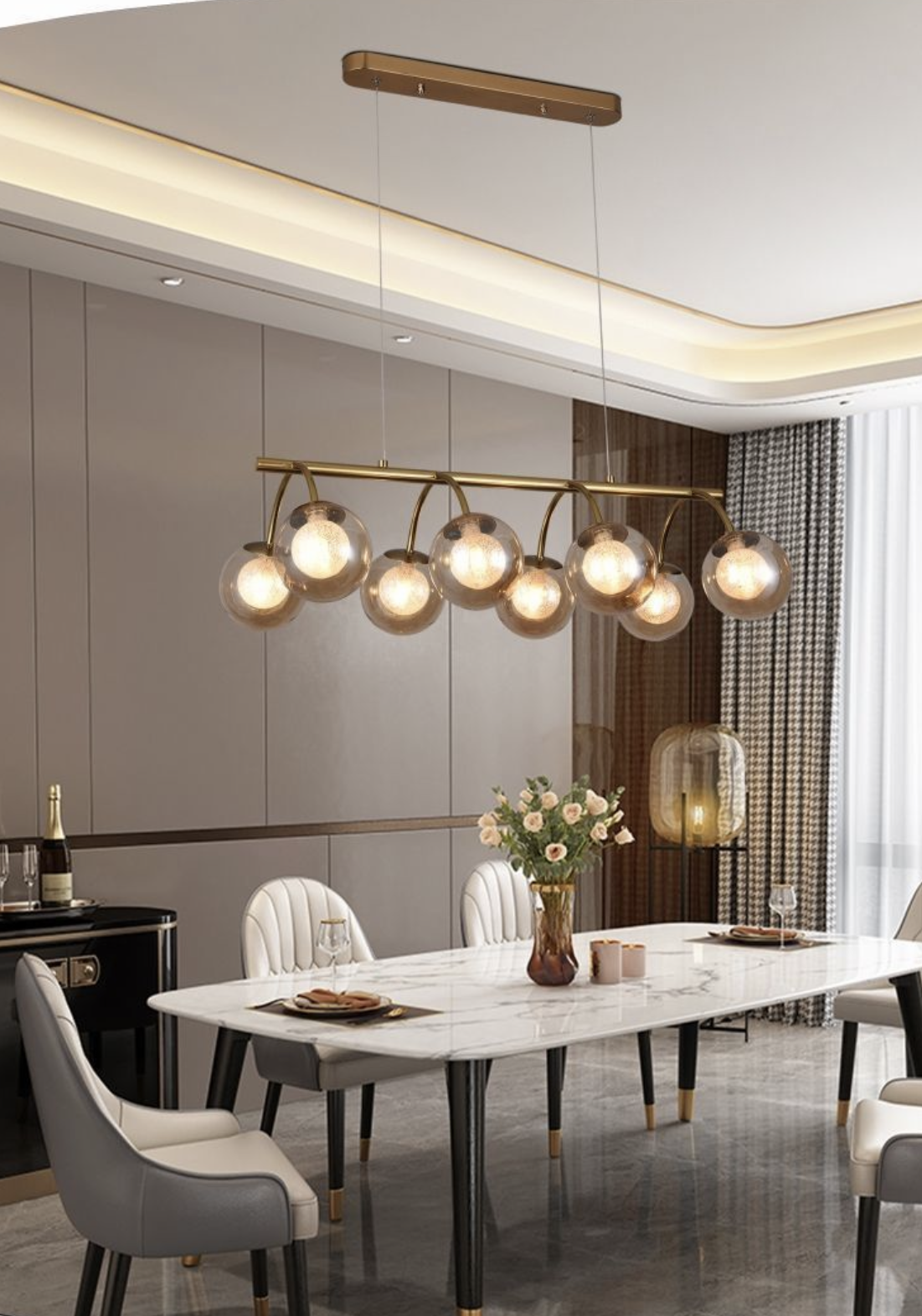 - 【Design Moderno ed Elegante】Lampadario a sospensione con 8 luci, finitura bronzo, ideale per aggiungere un tocco di classe e stile agli interni.