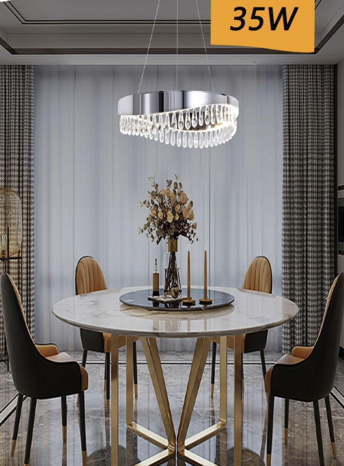 TEKHOME Lampadario LED con Cristalli, 35W 2800LM Luce Bianchissima 8000K, Sospensione Moderna in Acciaio Inox, per Interni, 220-240V B79-F