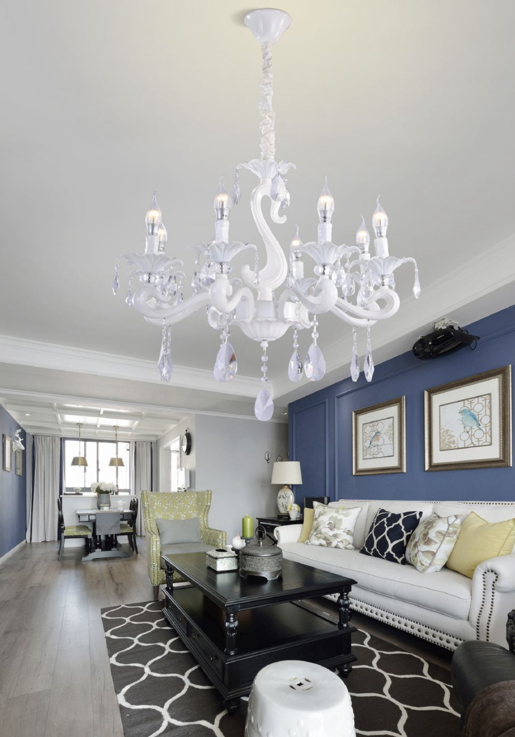 - Design Circolare Moderno a 8 Bracci Lampadario sospeso con struttura circolare in alluminio bianco e 8 paralumi in vetro. Design elegante e simmetrico, perfetto per ambienti classici e contemporanei. Forma armoniosa che crea un effetto luce avvolgente.