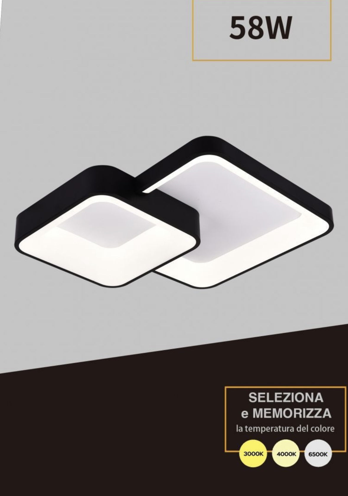 TEKHOME Plafoniera da soffitto a led 58 watt due quadrati lampadario cct tre colorazioni da 3000k a 6500k ideale per soggiorno, camera da letto, cucina e studio C59 (