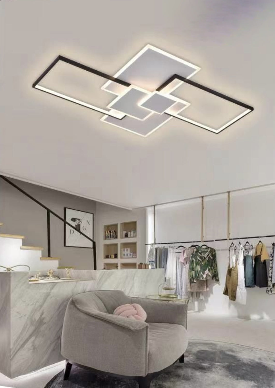 TEKHOME Plafoniera LED Geometrica 83W, 6640 lm, 3000K–4000K–6500K, Dimmerabile, CRI>80, Fascio 270°, IP20, Bianco/Nero, 110×70 cm, Modello C67-3C