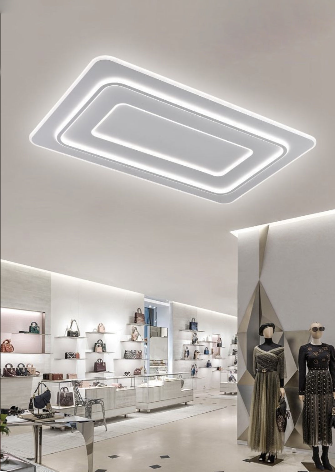 - 4. Design moderno rettangolare – Corpo bianco in metallo + acrilico + PS, dimensioni 102×62,5 cm, stile minimale facile da abbinare agli arredi.