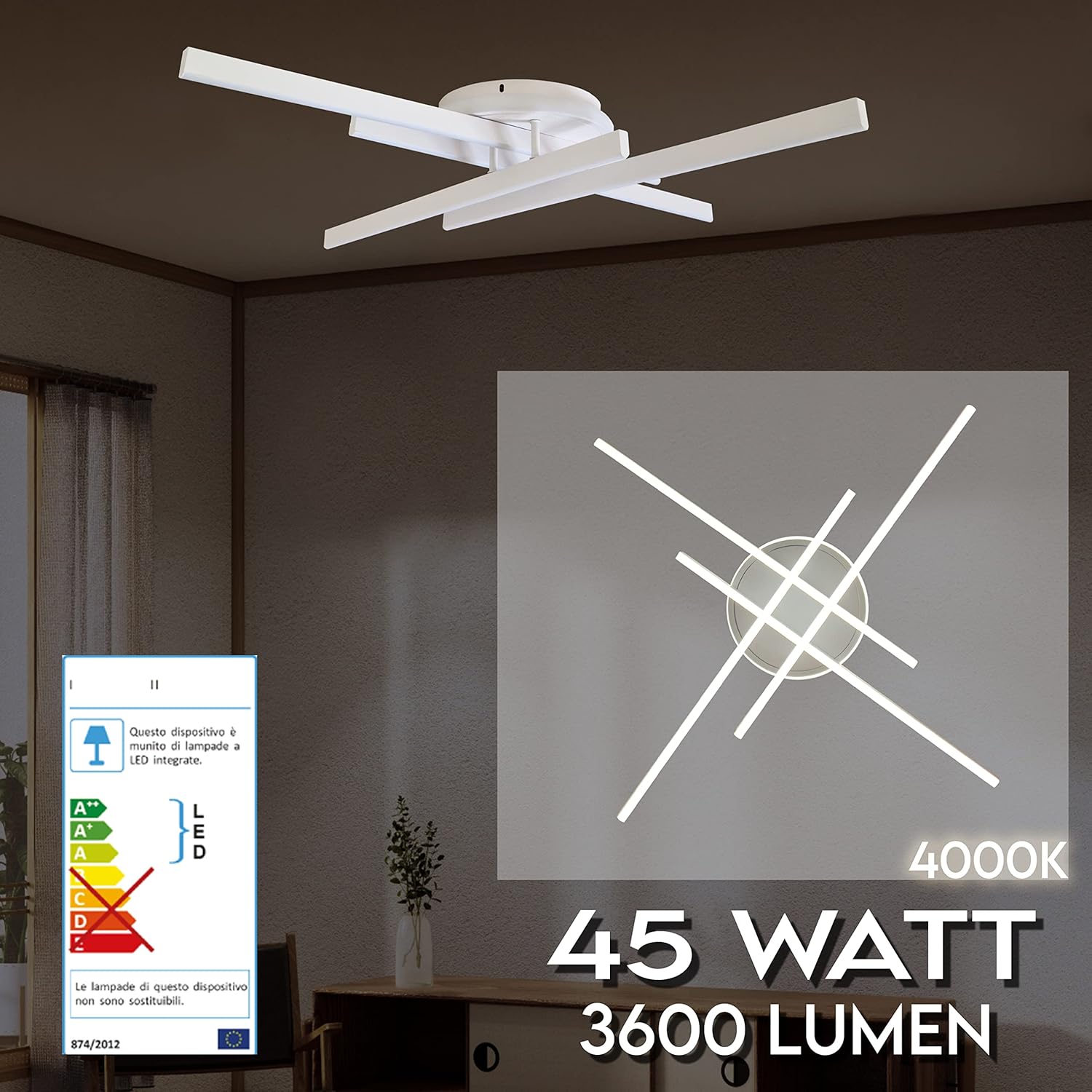 - ILLUMINAZIONE POTENTE: Plafoniera LED da 45 watt per illuminare ambienti fino a 20 mq.
