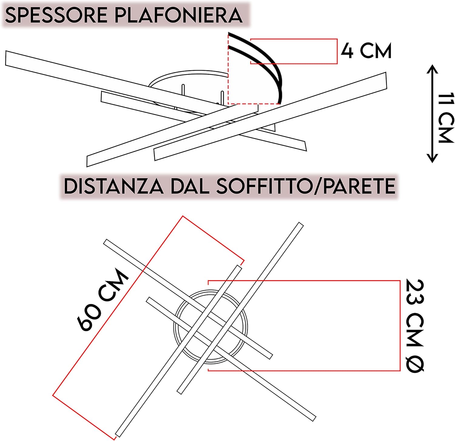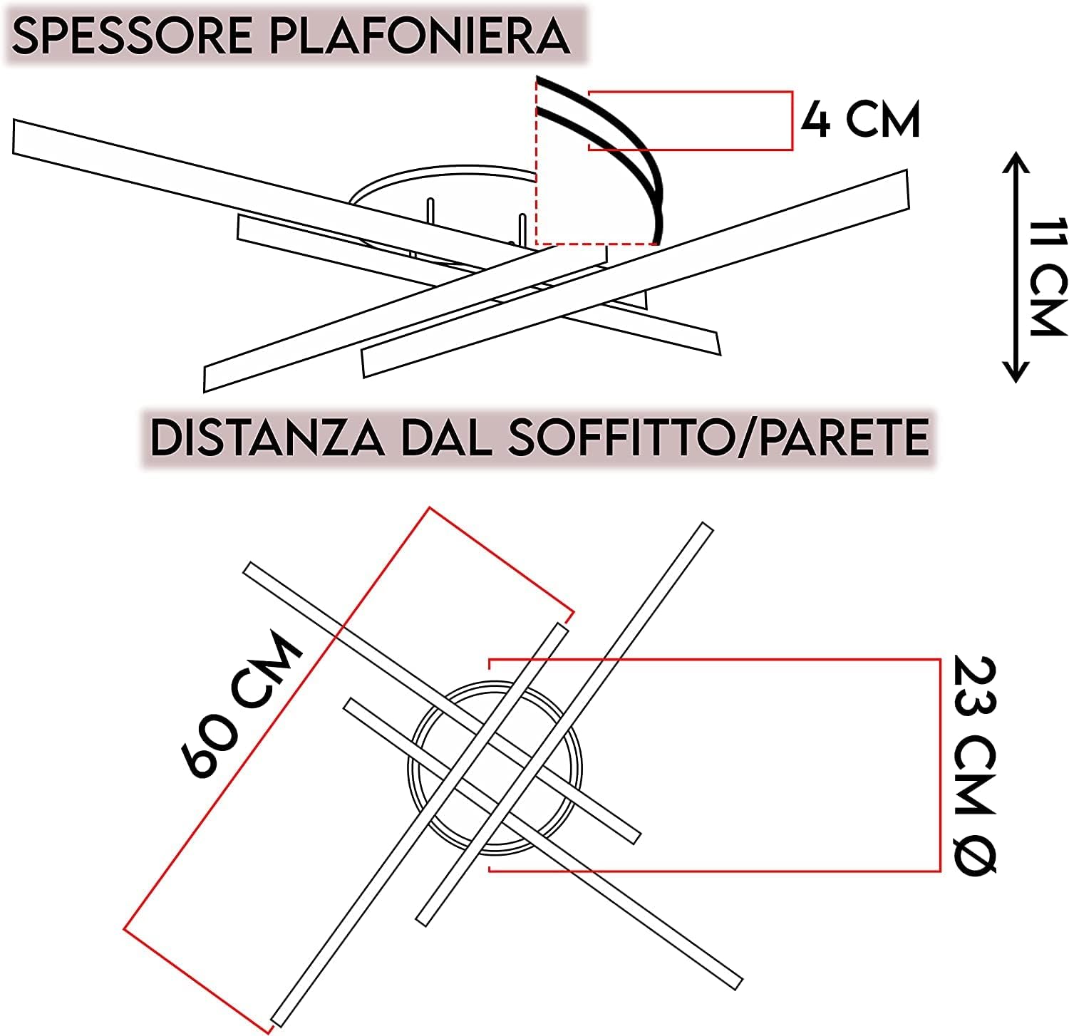 - DESIGN MINIMALE: Corpo in alluminio con dimensioni di 60x60x11 cm, adatto per soffitti fino a 3 metri.