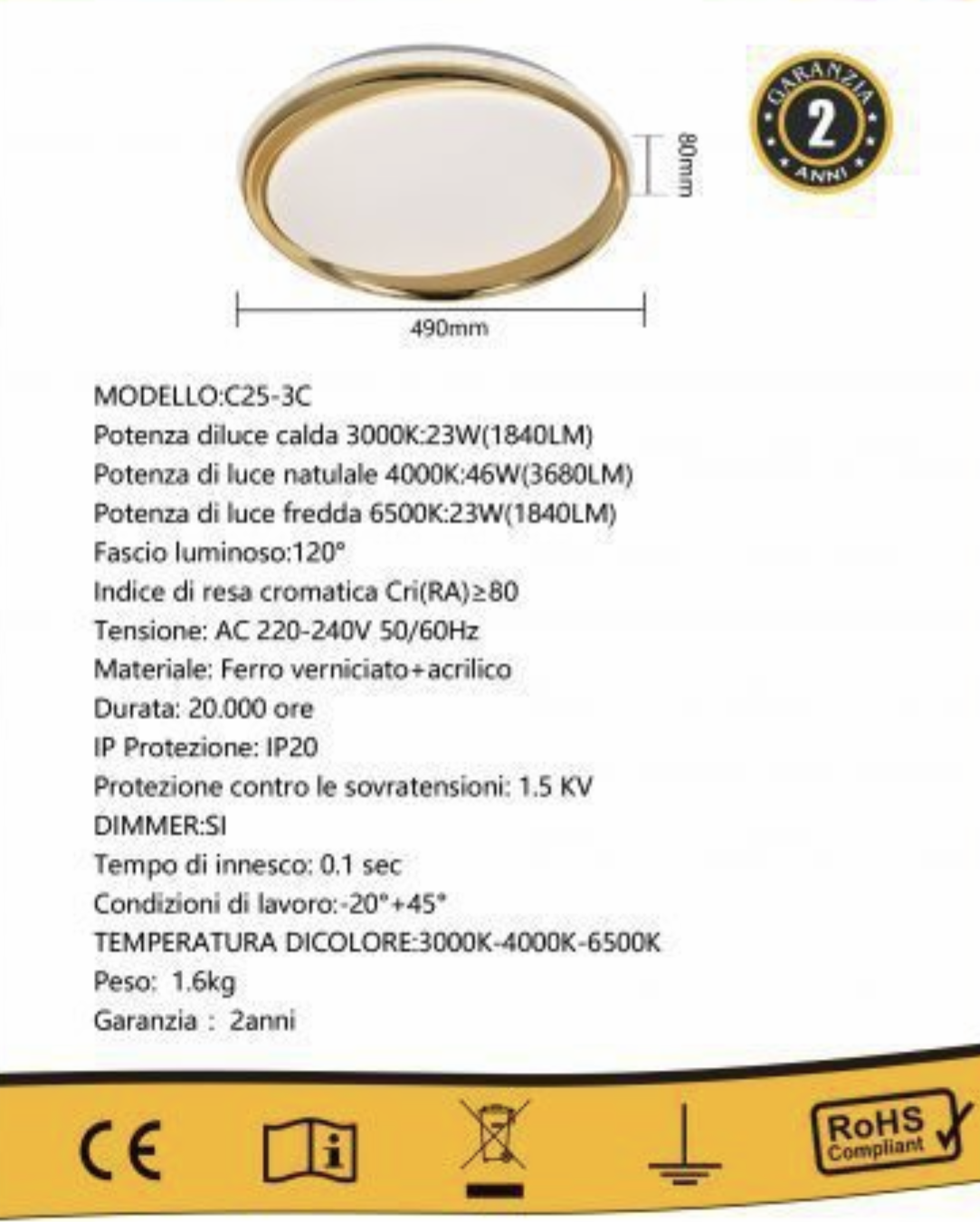 - 🔒 Sicura e Durevole: Durata fino a 20.000 ore, protezione da sovratensione 1.5KV, standard IP20. Lavora efficacemente in ambienti da -20° a +45°C. Conforme alle normative CE e RoHS.