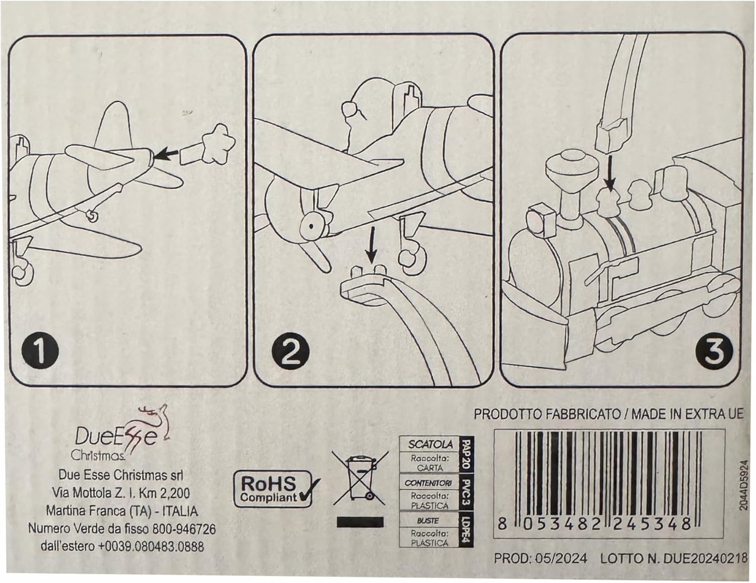 - 2. 🎵 Musica e Luci – Il treno emette melodie natalizie e luci colorate che rendono la decorazione ancora più suggestiva e vivace.